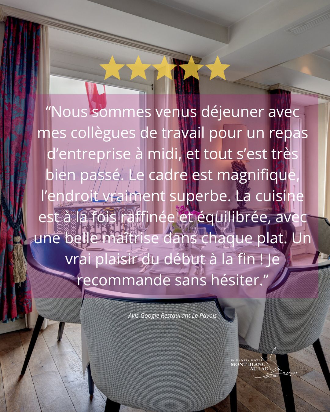 ⭐️⭐️⭐️⭐️⭐️"𝓐𝓶𝓫𝓲𝓪𝓷𝓬𝓮 𝓽𝓻𝓮̀𝓼 𝓮́𝓵𝓮́𝓰𝓪𝓷𝓽𝓮 𝓮𝓽 𝓻𝓪𝓯𝓯𝓲𝓷𝓮́𝓮." "𝓛𝓮 𝓼𝓮𝓻𝓿𝓲𝓬𝓮 𝓮́𝓽𝓪𝓲𝓽 𝓲𝓶𝓹𝓮𝓬𝓬𝓪𝓫𝓵𝓮, 𝓽𝓻𝓮̀𝓼 𝓬𝓱𝓪𝓵𝓮𝓾𝓻𝓮𝓾𝔁." "𝓠𝓾𝓪𝓵𝓲𝓽𝓮́ 𝓮𝔁𝓬𝓮𝓹𝓽𝓲𝓸𝓷𝓷𝓮𝓵𝓵𝓮 𝓮𝓽 𝓽𝓸𝓾𝓽 𝓼𝓲𝓶𝓹𝓵𝓮𝓶𝓮𝓷𝓽 𝓭𝓮́𝓵𝓲𝓬𝓲𝓮𝓾𝔁" "𝓝𝓸𝓾𝓼 𝓼𝓸𝓶𝓶𝓮𝓼 𝓿𝓮𝓷𝓾𝓼 𝓭𝓮́𝓳𝓮𝓾𝓷𝓮𝓻 𝓪𝓿𝓮𝓬 𝓶𝓮𝓼 𝓬𝓸𝓵𝓵𝓮̀𝓰𝓾𝓮𝓼 𝓭𝓮 𝓽𝓻𝓪𝓿𝓪𝓲𝓵 𝓹𝓸𝓾𝓻 𝓾𝓷 𝓻𝓮𝓹𝓪𝓼 𝓭’𝓮𝓷𝓽𝓻𝓮𝓹𝓻𝓲𝓼𝓮 𝓪̀ 𝓶𝓲𝓭𝓲, 𝓮𝓽 𝓽𝓸𝓾𝓽 𝓼’𝓮𝓼𝓽 𝓽𝓻𝓮̀𝓼 𝓫𝓲𝓮𝓷 𝓹𝓪𝓼𝓼𝓮́. 𝓛𝓮 𝓬𝓪𝓭𝓻𝓮 𝓮𝓼𝓽 𝓶𝓪𝓰𝓷𝓲𝓯𝓲𝓺𝓾𝓮, 𝓵’𝓮𝓷𝓭𝓻𝓸𝓲𝓽 𝓿𝓻𝓪𝓲𝓶𝓮𝓷𝓽 𝓼𝓾𝓹𝓮𝓻𝓫𝓮. 𝓛𝓪 𝓬𝓾𝓲𝓼𝓲𝓷𝓮 𝓮𝓼𝓽 𝓪̀ 𝓵𝓪 𝓯𝓸𝓲𝓼 𝓻𝓪𝓯𝓯𝓲𝓷𝓮́𝓮 𝓮𝓽 𝓮́𝓺𝓾𝓲𝓵𝓲𝓫𝓻𝓮́𝓮, 𝓪𝓿𝓮𝓬 𝓾𝓷𝓮 𝓫𝓮𝓵𝓵𝓮 𝓶𝓪𝓲̂𝓽𝓻𝓲𝓼𝓮 𝓭𝓪𝓷𝓼 𝓬𝓱𝓪𝓺𝓾𝓮 𝓹𝓵𝓪𝓽. " 𝓒𝓾𝓲𝓼𝓲𝓷𝓮: 5/5𝓢𝓮𝓻𝓿𝓲𝓬𝓮: 5/5𝓐𝓶𝓫𝓲𝓪𝓷𝓬𝓮: 5/5💖 En français, en allemand, en anglais, pour des repas d'entreprise ou privés, d'ici ou d'ailleurs: vous appréciez votre expérience dans notre restaurant Le Pavois et vous nous le dites en mots ou en images via les avis Google. Nous avons à coeur de vous offrir une expérience mémorable, toute notre équipe est dévouée à cela et vos retours nous motivent à vous offrir chaque jour ces moments de bonheur. 𝗠𝗘𝗥𝗖𝗜 . Merci de tout coeur pour vos partages et à bientôt chez nous pour votre prochain repas. 🍽️🍷 L'équipe du Pavois *** Pour réserver votre table: ➡️ 𝗘𝗻 𝗱𝗶𝗿𝗲𝗰𝘁 𝘀𝘂𝗿 𝗻𝗼𝘁𝗿𝗲 𝘀𝗶𝘁𝗲 𝗵𝘁𝘁𝗽𝘀://𝘄𝘄𝘄.𝗵𝗼𝘁𝗲𝗹-𝗺𝗼𝗻𝘁-𝗯𝗹𝗮𝗻𝗰.𝗰𝗵/𝗿𝗲𝘀𝘁𝗮𝘂𝗿𝗮𝗻𝘁𝘀 ou: 📞 021 804 8787 💌 info@hotel-mont-blanc.ch Ouvrir sur Instagram